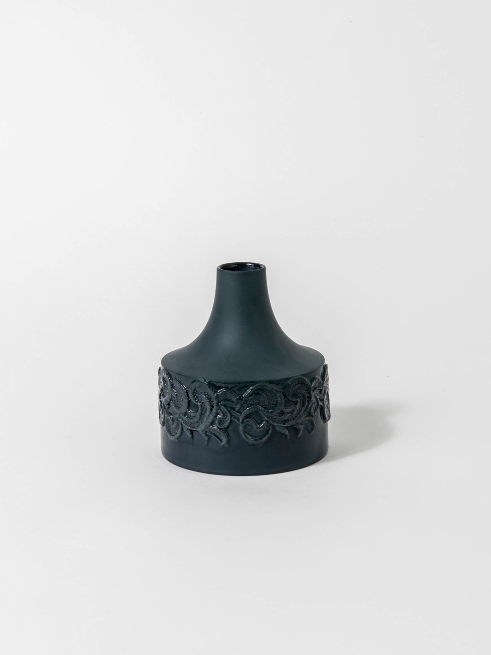 Delicate lace made from silk and natural fibers is dipped into liquid porcelain and applied to leather-hard porcelain. When fired, the fabric burns away, leaving its delicate structure preserved forever in porcelain.